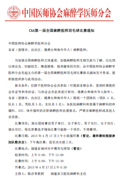 中华医学会麻醉学分会2015年全国中青年麻醉学科医师学术论坛征文通知